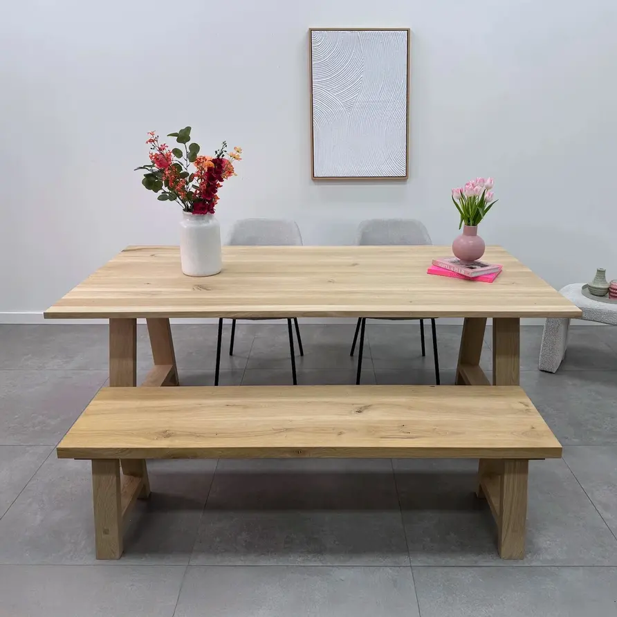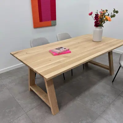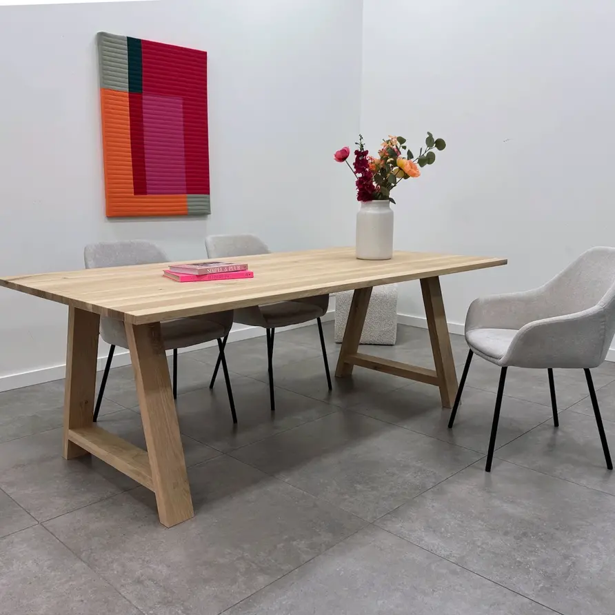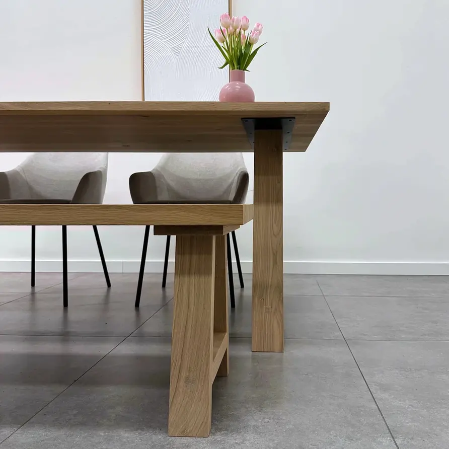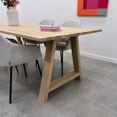 Een kwalitatieve eiken A-tafelpoot: zeer sfeervol! De elegante A-poten set 4x10 cm van rustiek eikenhout (B/C) is geschikt voor een tafel(blad) vanaf 80 cm breed. Lees meer