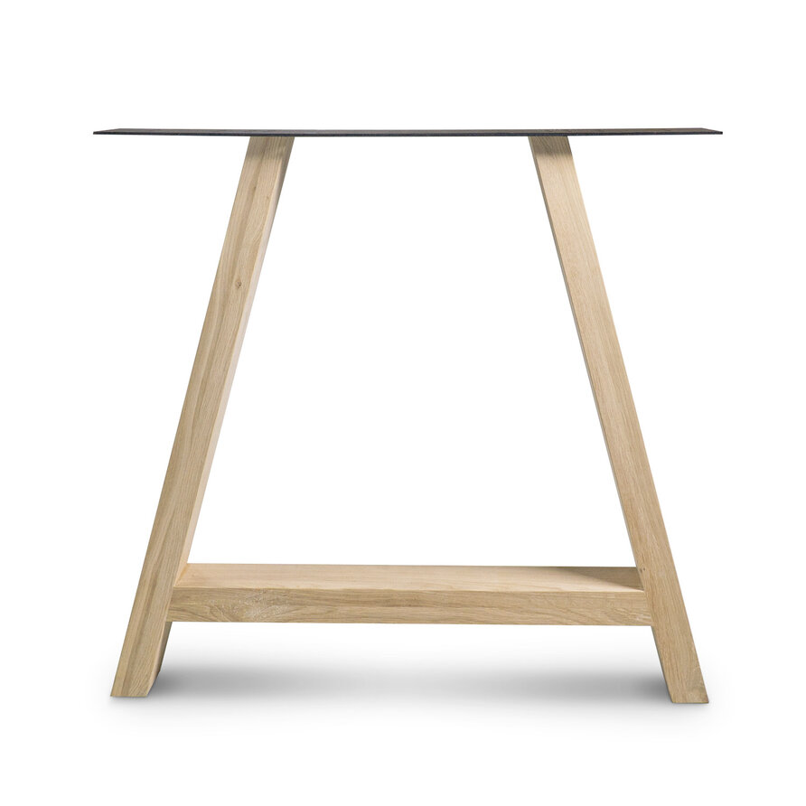 Eiken A-tafelpoten - 4x10 cm - set (2 stuks) - breedte (montageplaat): 78 cm - breedte onderkant: 76 cm - hoogte: 72 cm - gelijmd rustiek eikenhout (B/C) - KD 8-12% - tafelpoot geschikt voor een tafel(blad) vanaf 80 cm breed.