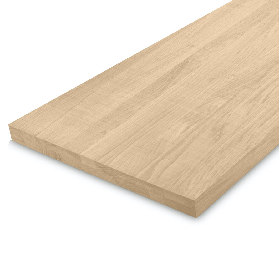 Eiken blad - fijnbezaagd - op maat - 4 cm dik - prime eikenhout (A/B) - smalle lamel (4-10 cm) - gelijmd eiken tablet - KD 8-12%
