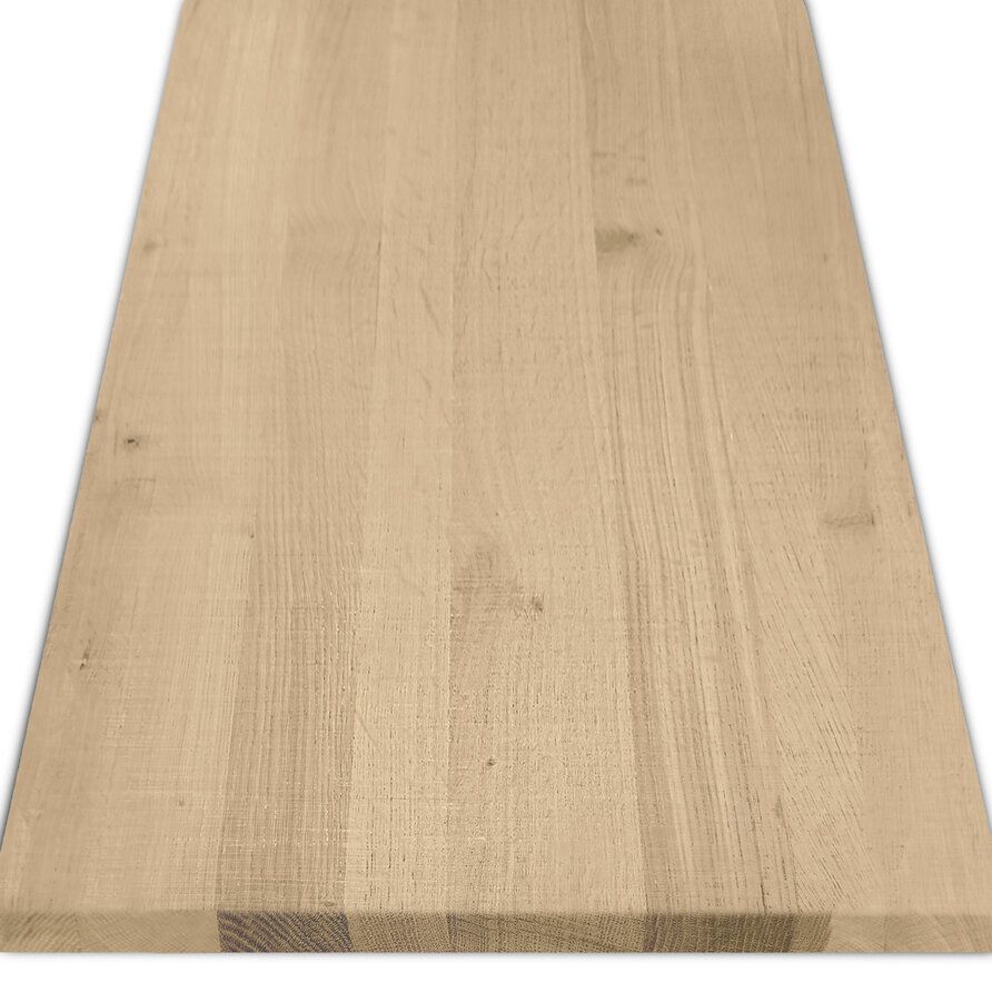 Eiken blad - fijnbezaagd - op maat - 3 cm dik - rustiek eikenhout (B/C) - smalle lamel (4-10 cm) - gelijmd eiken tablet - KD 8-12%