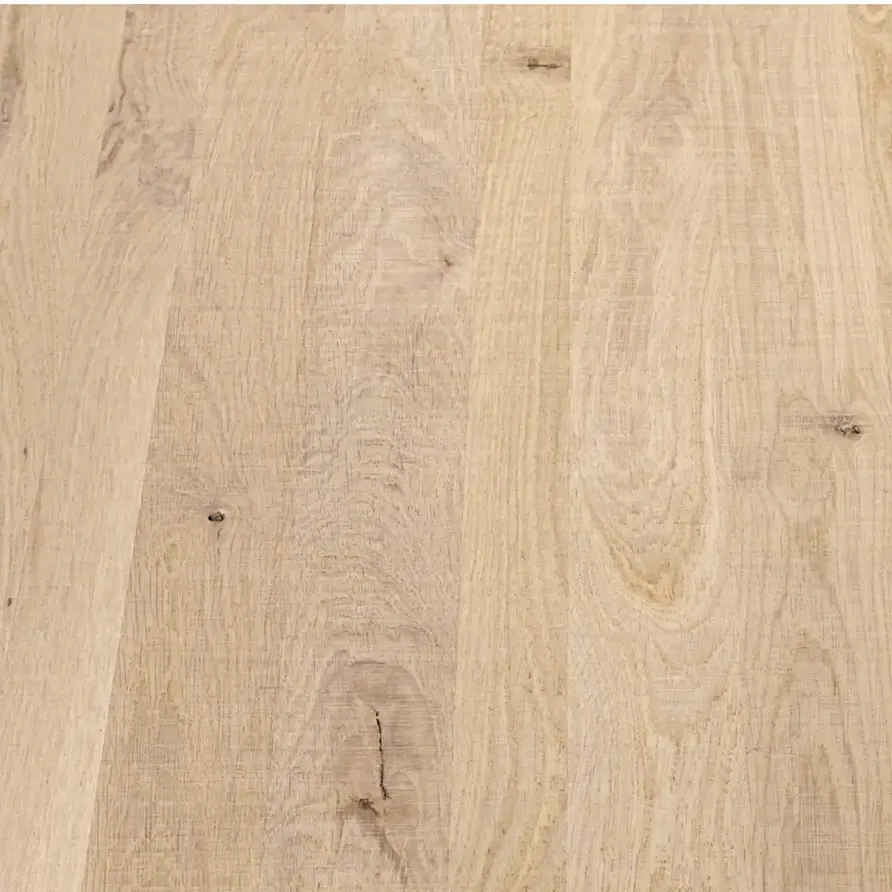 Eiken blad - fijnbezaagd - 4 cm dik - rustiek eikenhout (B/C) - smalle lamel (4-10 cm) - gelijmd eiken tablet - KD 8-12%. Een prachtig eiken blad / tablet volledig op maat en afgewerkt volgens uw wensen. Voor een fijnbezaagde look worden er ruwe dwarsstrepen op het hout aangebracht, die lijken op de kenmerkende zaagsporen van "ruw hout". Dit realiseert een bijzonder eindresultaat met een natuurlijke en rustieke uitstraling. Al onze houten bladen worden met de grootste zorg met de hand vervaardigd door ervaren vakmensen. Ons rustiek Europees eikenhout heeft een "B-sortering zichtzijde" met charmante knoesten en scheurtjes: Levendig en natuurlijk eiken, ideaal voor een warme & sfeervolle uitstraling. Een tablet bestaat uit doorlopende lamellen (in de lengte) van kunstmatig gedroogd eikenhout met een vochtpercentage van 8-12%, ideaal voor gebruik binnenshuis. De lamellen hebben een breedte tussen 4 en 10 cm, wat een vrij gangbare lamelbreedte is. Uw op maat gemaakte eiken blad wordt standaard onbehandeld en met scherpe randen afgeleverd. Er zijn echter verschillende extra mogelijkheden beschikbaar. U kunt alle extra opties vinden in de online configurator.