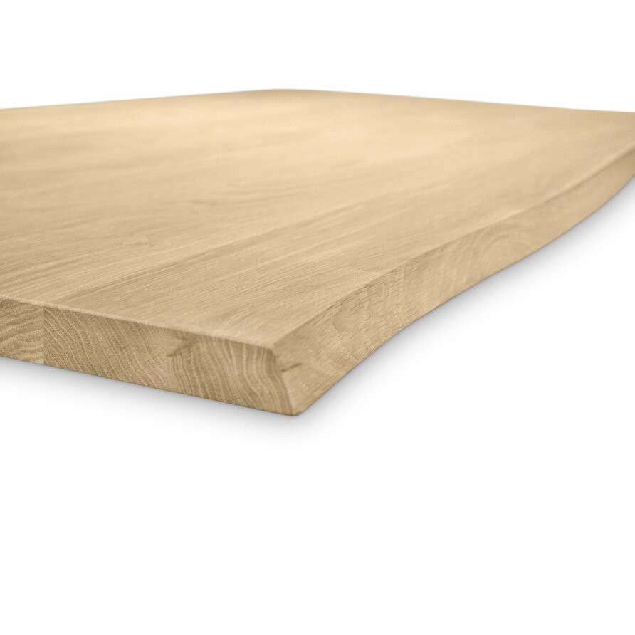 Ons prime Europees eikenhout heeft een "A-kwaliteit zichtzijde" (foutvrij) zonder knoesten: Stijlvol eiken, ideaal voor een luxueuze & sfeervolle uitstraling. Een tafelblad bestaat uit doorlopende lamellen (in de lengte) van kunstmatig gedroogd eikenhout met een vochtpercentage van 8-12%, ideaal voor gebruik binnenshuis. De lamellen hebben een breedte tussen 4 en 10 cm, wat een vrij gangbare lamelbreedte is. Uw eiken tafelblad wordt standaard onbehandeld, fijn geschuurd (korrel 120) en met afgeronde randen (2 mm radius) afgeleverd. Er zijn echter verschillende extra mogelijkheden beschikbaar. U kunt alle extra opties vinden in de online configurator.