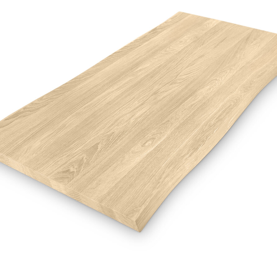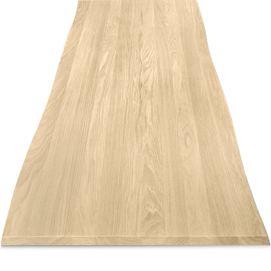 Ons prime Europees eikenhout heeft een "A-kwaliteit zichtzijde" (foutvrij) zonder knoesten: Stijlvol eiken, ideaal voor een luxueuze & sfeervolle uitstraling. Een tafelblad bestaat uit doorlopende lamellen (in de lengte) van kunstmatig gedroogd eikenhout met een vochtpercentage van 8-12%, ideaal voor gebruik binnenshuis. De lamellen hebben een breedte tussen 4 en 10 cm, wat een vrij gangbare lamelbreedte is. Uw op maat gemaakte eiken tafelblad wordt standaard onbehandeld, fijn geschuurd (korrel 120) en met afgeronde randen (2 mm radius) afgeleverd. Er zijn echter verschillende extra mogelijkheden beschikbaar. U kunt alle extra opties vinden in de online configurator.
