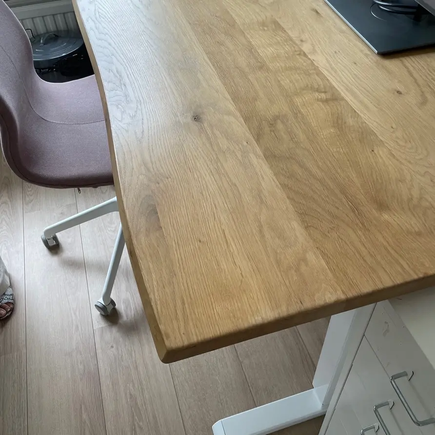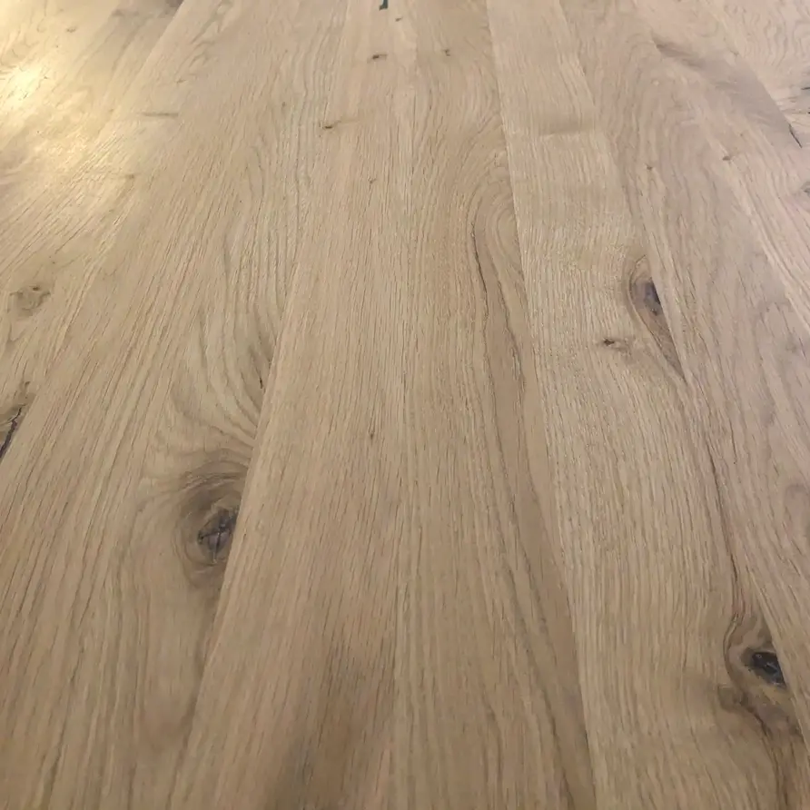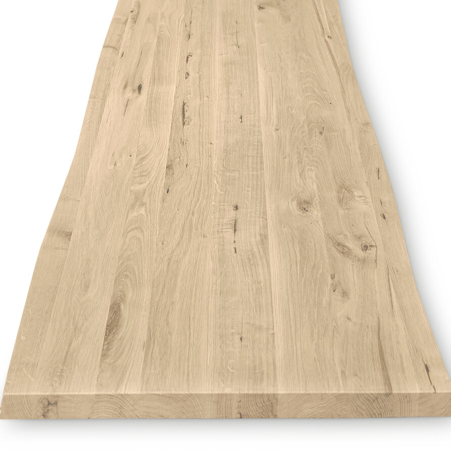 Ons rustiek Europees eikenhout heeft een "B-sortering zichtzijde" met charmante knoesten en scheurtjes: Levendig en natuurlijk eiken, ideaal voor een warme & sfeervolle uitstraling. Een tafelblad bestaat uit doorlopende lamellen (in de lengte) van kunstmatig gedroogd eikenhout met een vochtpercentage van 8-12%, ideaal voor gebruik binnenshuis. De lamellen hebben een breedte tussen 4 en 10 cm, wat een vrij gangbare lamelbreedte is. Uw op maat gemaakte eiken tafelblad wordt standaard onbehandeld, fijn geschuurd (korrel 120) en met afgeronde randen (2 mm radius) afgeleverd. Er zijn echter verschillende extra mogelijkheden beschikbaar. U kunt alle extra opties vinden in de online configurator.