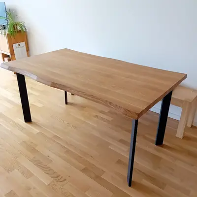 Een prime eiken boomstam tafelblad (brede lamel) van 4 cm dik in een afmeting op maat, met de hand vervaardigd door ervaren vakmensen! Stijlvol & luxueus eikenhout met een stoere "boomstam look" rand. Stel uw eiken boomstamtafel naar wens samen! Lees meer