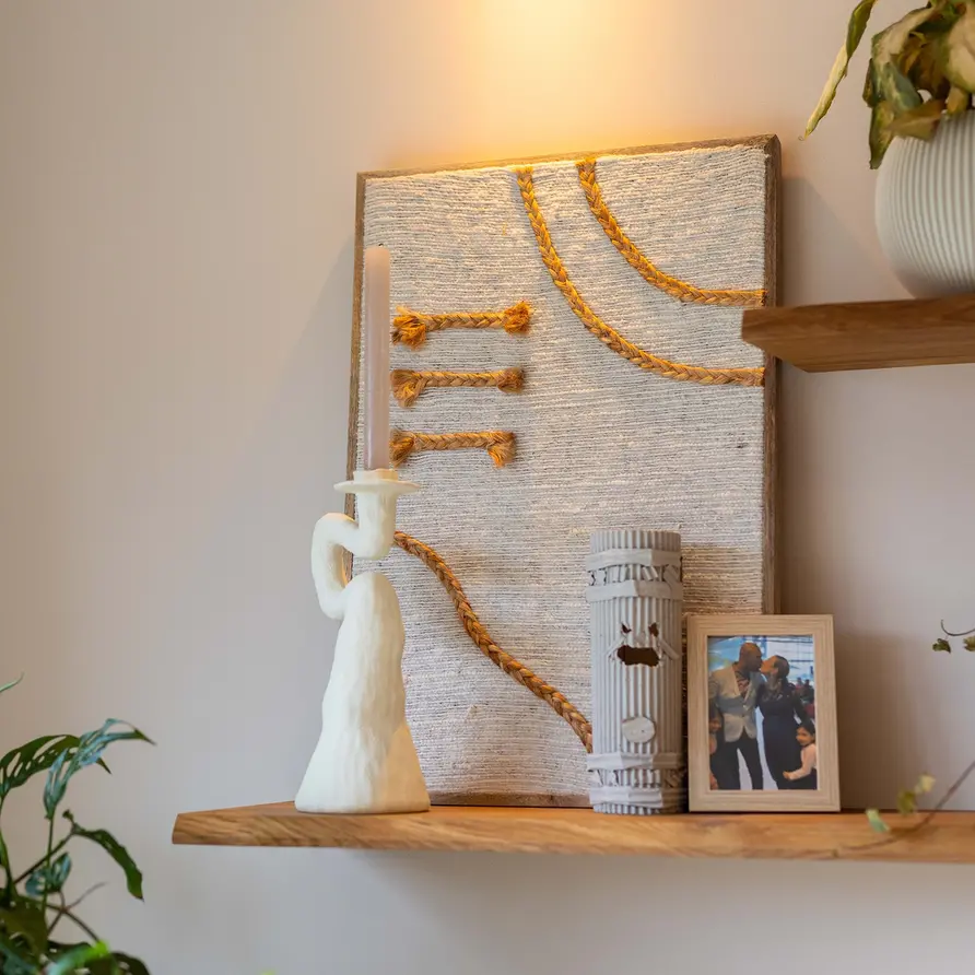 Een zwevende wandplank (smalle lamel) van 3 cm dik prime eikenhout, inclusief onzichtbare plankdragers! Stijlvol & luxueus eikenhout voor aan de muur, met een stoere "boomstam look" rand. Stel uw schap / plank volledig op maat & naar wens samen. Lees meer