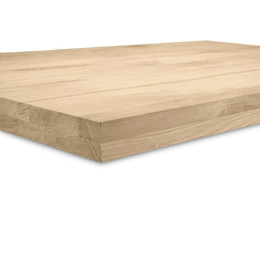 Eiken tafelblad - 2-laags massief - 8 cm dik - prime eikenhout (A/B) - smalle lamel (4-10 cm) - vaste afmetingen - gelijmd KD 8-12%