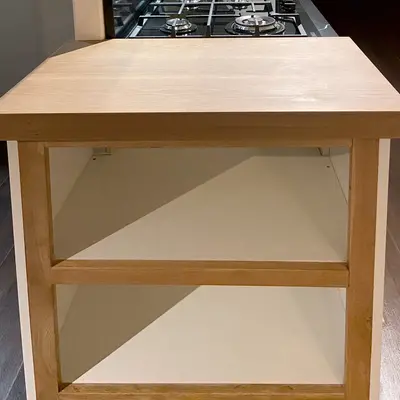 Eiken tafelblad - 3-laags (hol) - op maat - 6 cm dik - prime eikenhout (A/B) - smalle lamel (4-10 cm) - gelijmd KD 8-12%