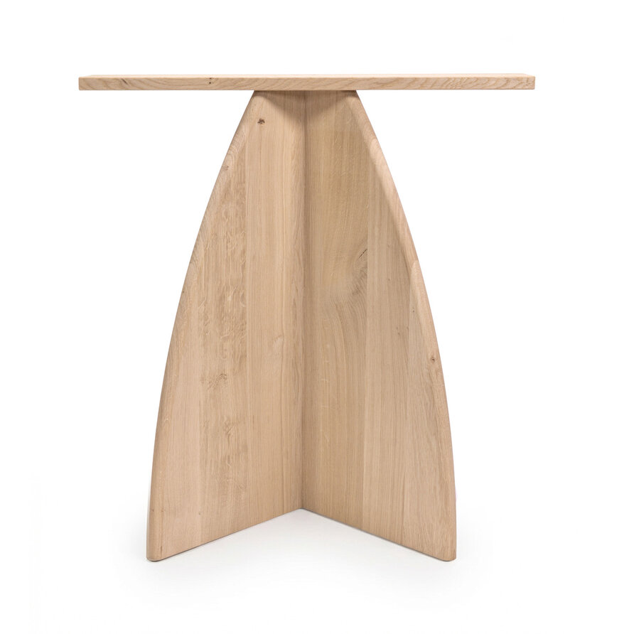 Eiken vlinder poten (bol) - set (2 stuks) - dikte: 2,7 cm - breedte (montageplaat): 70 cm - breedte onderkant: 48 cm - diepte onderkant: 26 cm - hoogte: 72 cm - gelijmd rustiek eikenhout (B/C) - KD 8-12%.