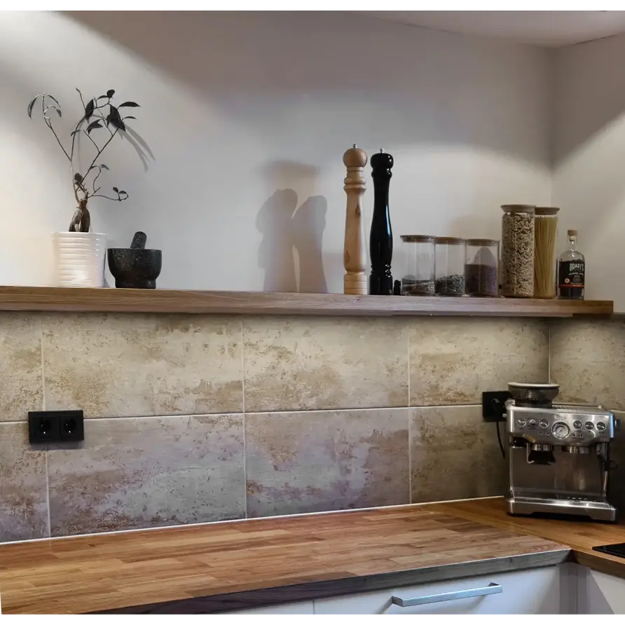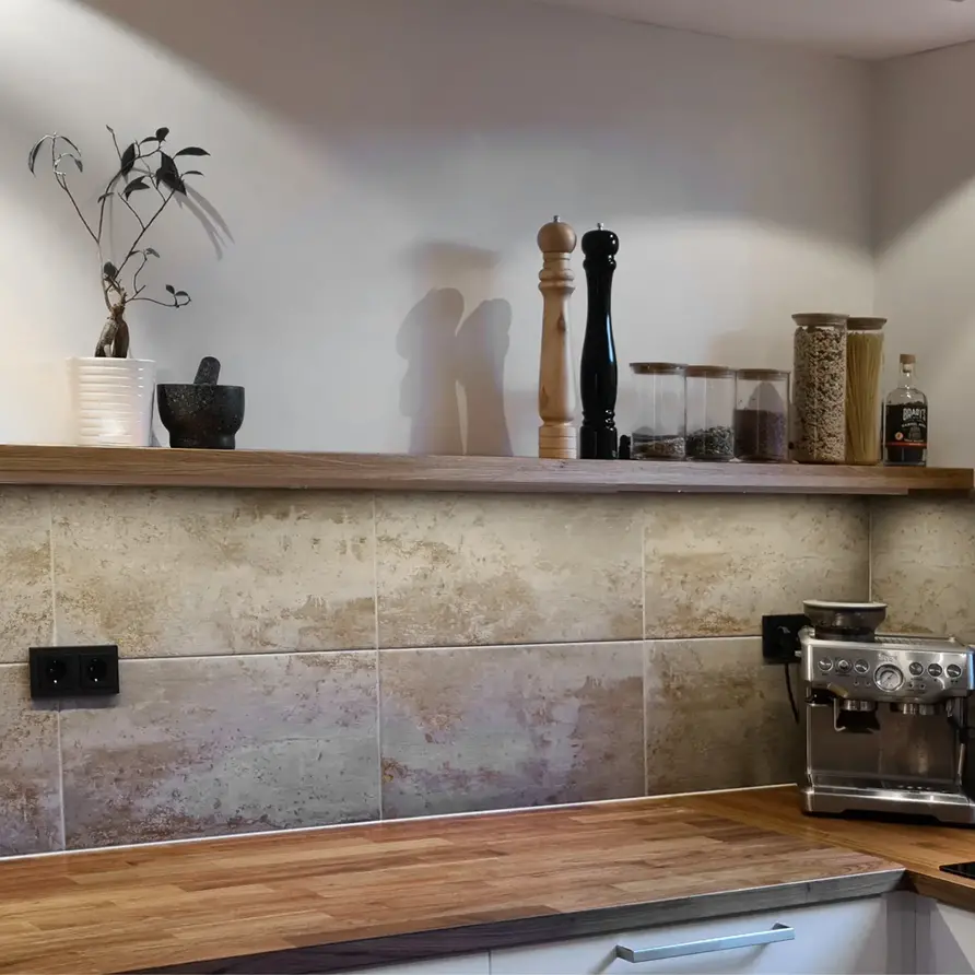 Een zwevende wandplank (brede lamel) van 2,7 cm dik rustiek eikenhout, inclusief onzichtbare plankdragers! Warm & sfeervol eikenhout voor aan de muur, met de hand vervaardigd. Stel uw schap / plank volledig op maat & naar wens samen. Lees meer