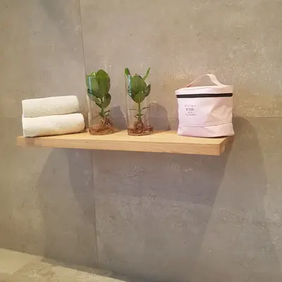 De wandplank wordt inclusief (het juiste aantal!) onzichtbare plankdragers geleverd en uiteraard ook correct voorgeboord (t.b.v. plankdragers). Uw op maat gemaakte wandplak wordt standaard onbehandeld, fijn geschuurd (korrel 120) en met afgeronde randen (2 mm radius) afgeleverd. Er zijn daarnaast verschillende extra mogelijkheden beschikbaar. U kunt alle extra opties vinden in de online configurator.