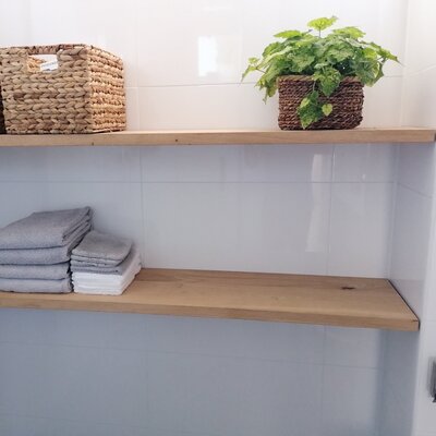 Een zwevende wandplank (brede lamel) van 4 cm dik rustiek eikenhout, inclusief onzichtbare plankdragers! Warm & sfeervol eikenhout voor aan de muur, met de hand vervaardigd. Stel uw schap / plank volledig op maat & naar wens samen. Lees meer