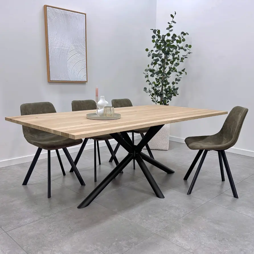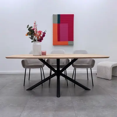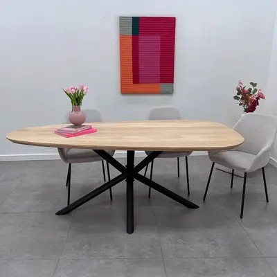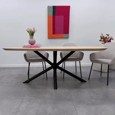 Een kwalitatief rond matrix tafelonderstel van metaal met hoogwaardige zwarte poedercoating in RAL 9005: modern, stoer en trendy! De elegante en stijlvolle "spinnenpoot" is geschikt voor een tafel(blad) van 170x80 tot 250x110 cm. Lees meer