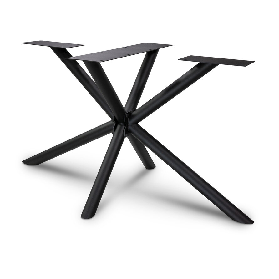Dit metalen tafelonderstel wordt in drie delen plus bevestigingsmaterialen (bouten & schroeven) geleverd. U bent zelf verantwoordelijk voor een correcte montage. Het onderstel is voorzien van drie stevige stalen montageplaten incl. gaten, voor een eenvoudige bevestiging centraal onder de tafel. Aan de onderzijde is deze tafelpoot vlak. Wij adviseren in principe altijd om gebruik te maken van vilt (meubelvilt / plakvilt).