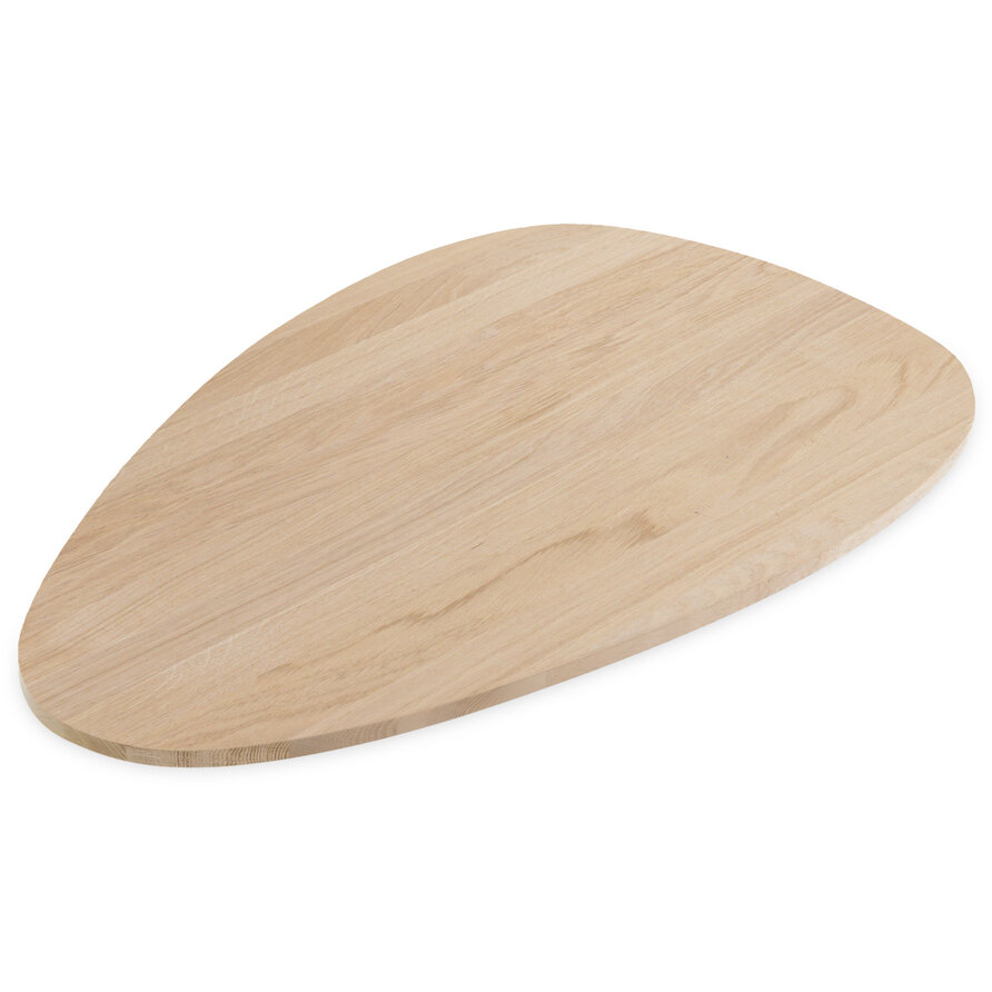 Eiken tafelblad - organisch / kiezel - 3 cm dik - prime eikenhout (A/B) - smalle lamel (4-10 cm) - gelijmd eiken tafel - KD 8-12%. Een mooi organisch eiken tafelblad, verkrijgbaar in diverse vaste afmetingen, afgewerkt volgens uw wensen. Een organisch eiken tafelblad is chic en apart, ideaal voor een trendy interieur. De kiezel vormgeving verenigt een natuurlijke look met een moderne uitstraling. Al onze houten tafelbladen worden met de grootste zorg met de hand vervaardigd door ervaren vakmensen. Ons prime Europees eikenhout heeft een "A-kwaliteit zichtzijde" (foutvrij) zonder knoesten: Stijlvol eiken, ideaal voor een luxueuze & sfeervolle uitstraling. Een tafelblad bestaat uit doorlopende lamellen (in de lengte) van kunstmatig gedroogd eikenhout met een vochtpercentage van 8-12%, ideaal voor gebruik binnenshuis. De lamellen hebben een breedte tussen 4 en 10 cm, wat een vrij gangbare lamelbreedte is. Uw eiken tafelblad wordt standaard onbehandeld, fijn geschuurd (korrel 120) en met afgeronde randen (2 mm radius) afgeleverd. Er zijn echter verschillende extra mogelijkheden beschikbaar. U kunt alle extra opties vinden in de online configurator.