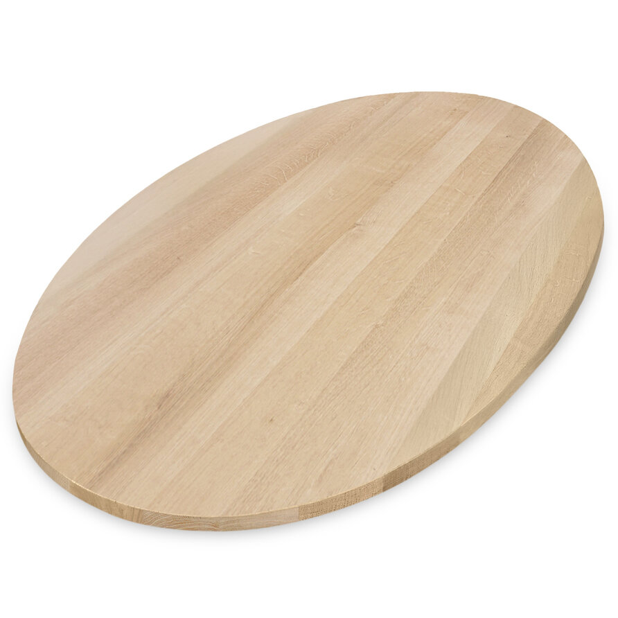 Ovaal eiken tafelblad - 3 cm dik - prime eikenhout (A/B) - smalle lamel (4-10 cm) - vaste ellips afmetingen - gelijmd KD 8-12%