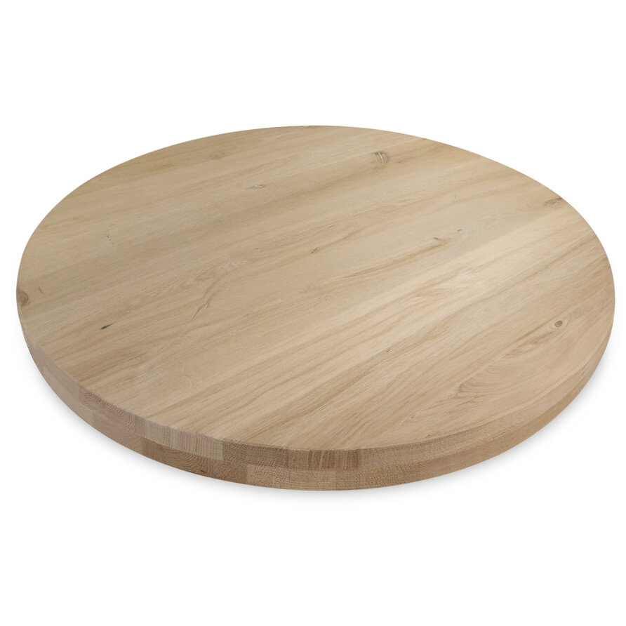 Rond eiken tafelblad - op maat - 2-laags massief - 8 cm dik - rustiek eikenhout (B/C) - smalle lamel (4-10 cm) - gelijmd KD 8-12%