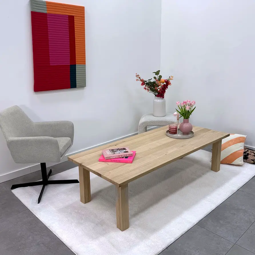 Een toegankelijke "losse" eiken salontafel blokpoot: sfeervol en eigentijds! Deze robuuste eiken salontafel poten in blokvorm van prime eikenhout worden als set van 4 stuks geleverd. Lees meer