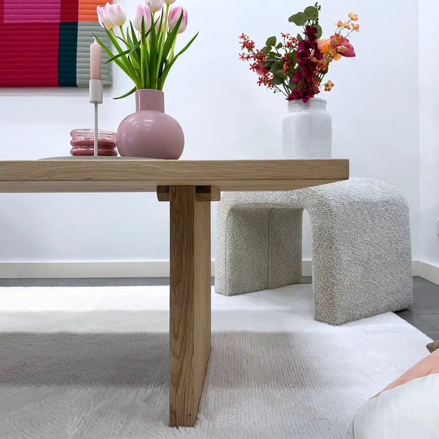 Een kwalitatieve eikenhouten salontafel paneelpoot: Modern en sfeervol, waarbij de strakke vormgeving een stijlvolle look met een luxe accent realiseert. Het stevige gelijmde eikenhout, de (eenvoudige) moderne vormgeving en het robuuste & massieve 4 cm dikke sfeervolle eikenhout zorgen voor een prachtig eindresultaat. Ideaal te combineren met een eiken salontafelblad! Ons rustiek Europees eikenhout heeft een "B-sortering zichtzijde" met charmante knoesten en scheurtjes: Levendig en natuurlijk eiken, ideaal voor een warme & sfeervolle uitstraling.