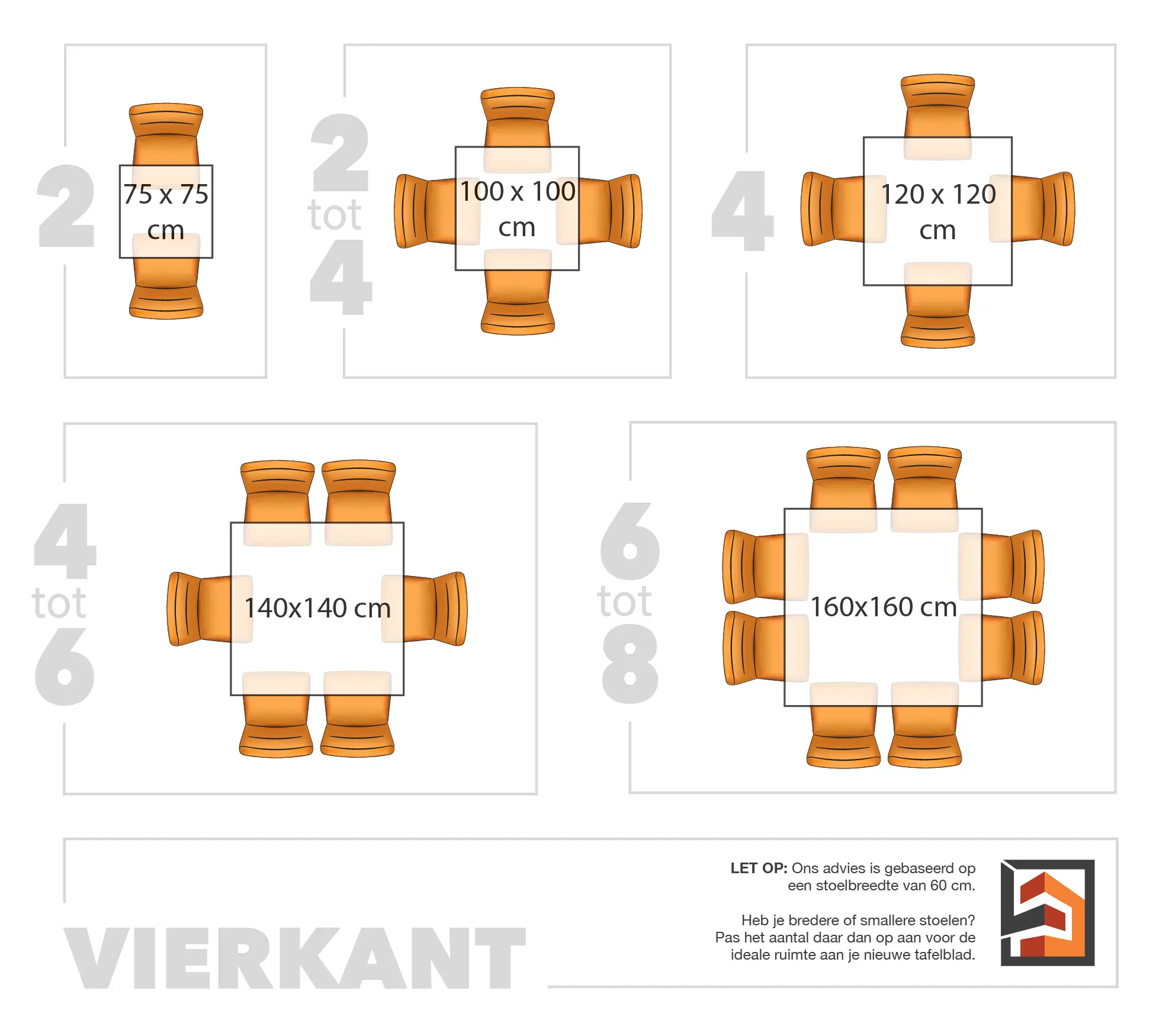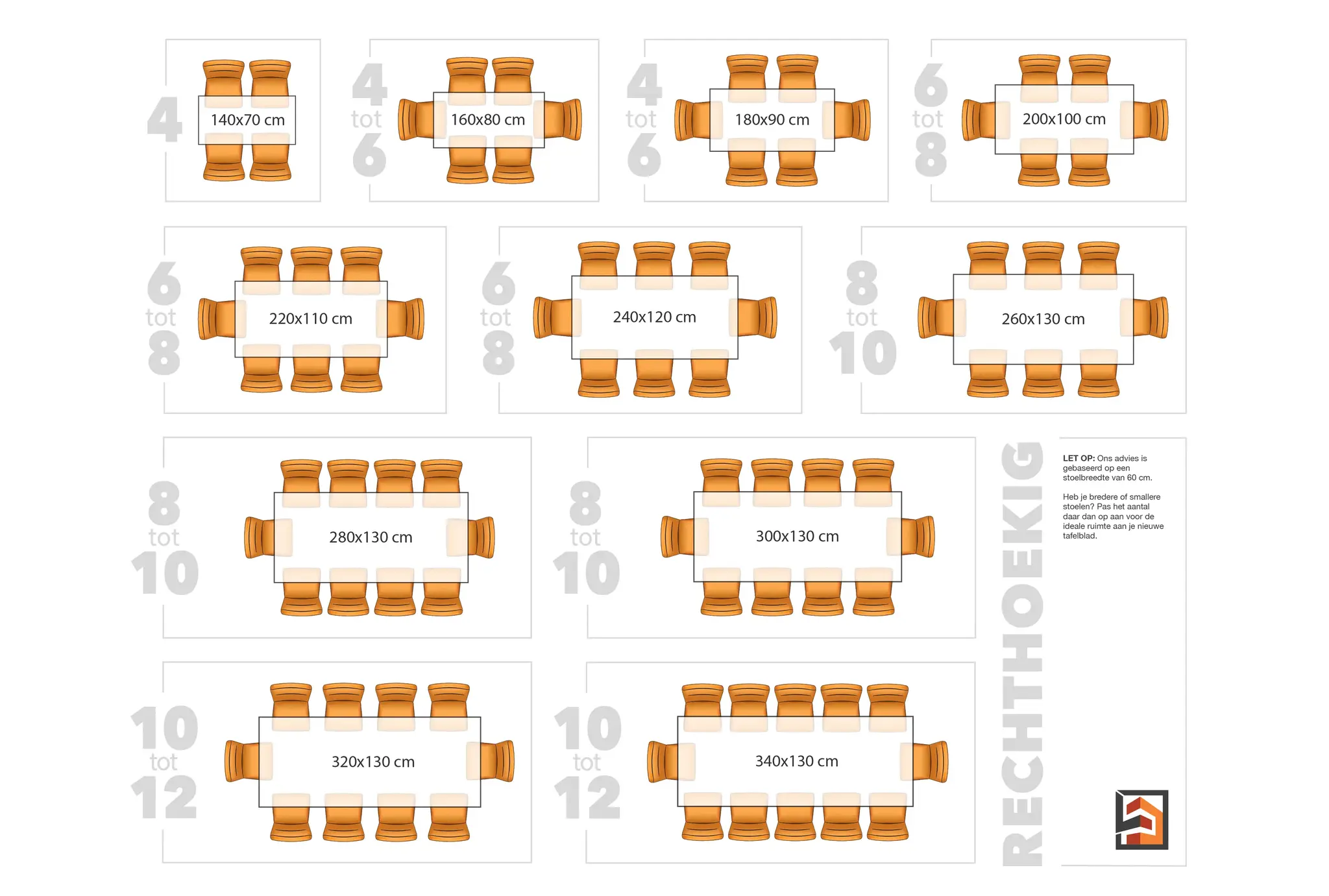 Bij het kiezen van een nieuwe (eet)tafel is het belangrijk om rekening te houden met de beschikbare ruimte voor stoelen. Daarom hebben wij een handig overzicht voor u uitgewerkt.
