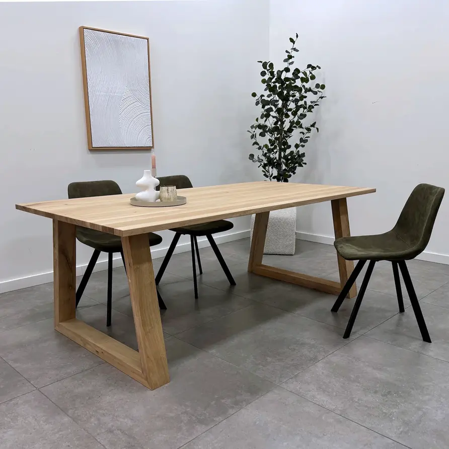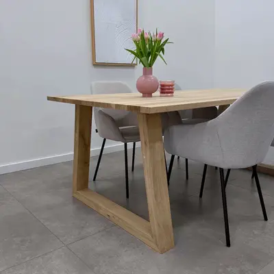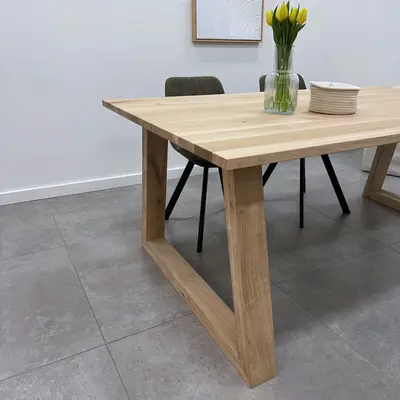 Een kwalitatieve eiken trapeze tafelpoot: sfeervol en eigentijds! De elegante trapezium poten set 6x10 cm van rustiek eikenhout (B/C) is geschikt voor een tafel(blad) vanaf 98 cm breed. Lees meer