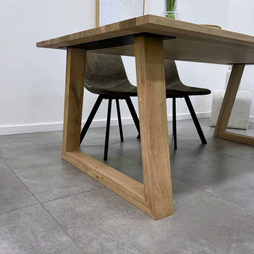 Trapeze tafelpoten eiken - 6x10 cm - breedte: 78-95 cm - hoogte: 72 cm - trapezium poot set - gelijmd rustiek eikenhout - KD 8-12%