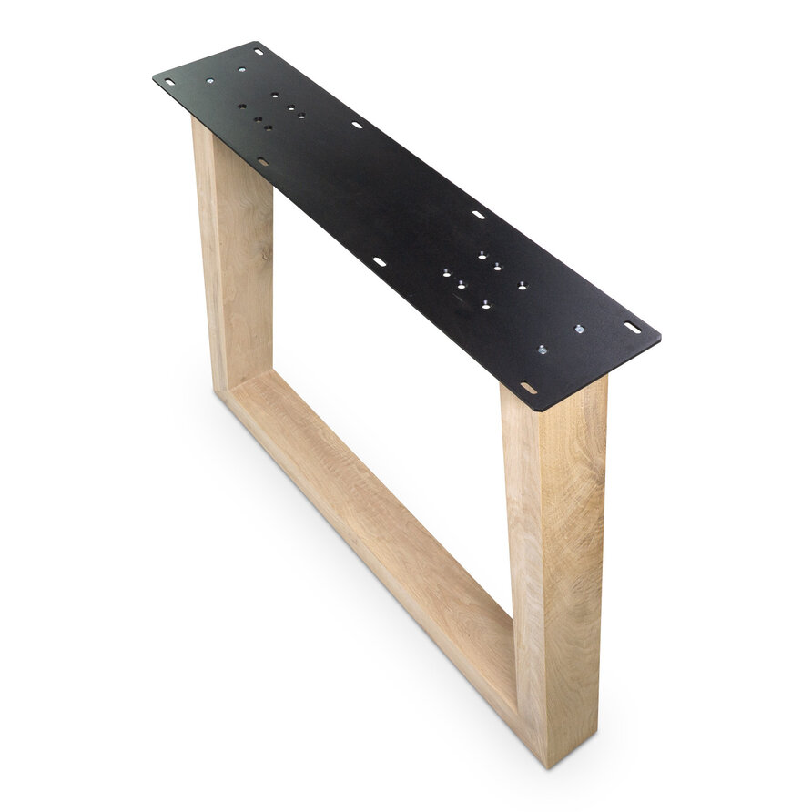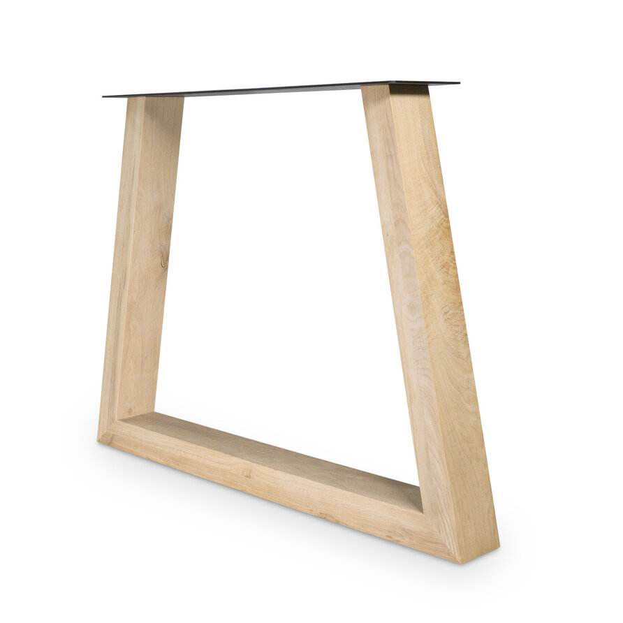 Eiken trapezium tafelpoten - 6x10 cm - set (2 stuks) - breedte (montageplaat): 78 cm - breedte onderkant: 95 cm - hoogte: 72 cm - gelijmd rustiek eikenhout (B/C) - KD 8-12% - tafelpoot geschikt voor een tafel(blad) vanaf 98 cm breed.