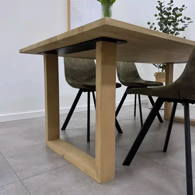 Een kwalitatieve eikenhouten U poot: sfeervol en stijlvol, waarbij de 4x10 cm maatvoering zorgt voor een elegant accent. Het stevige gelijmde eikenhout, de stijlvolle U-vorm, de elegante 4x10 cm "balkmaat" en het sfeervolle eikenhout zorgen voor een prachtig eindresultaat. Ideaal te combineren met een eiken tafelblad! Ons rustiek Europees eikenhout heeft een "B-sortering zichtzijde" met charmante knoesten en scheurtjes: Levendig en natuurlijk eiken, ideaal voor een warme & sfeervolle uitstraling.
