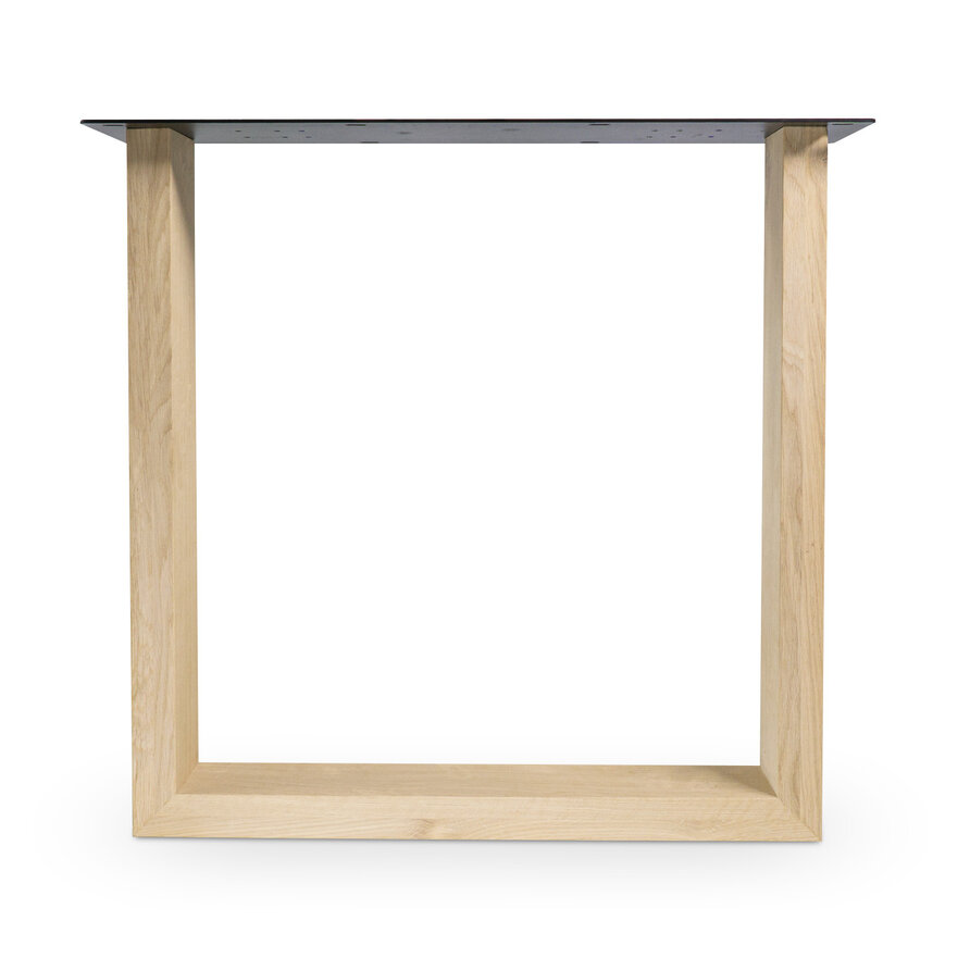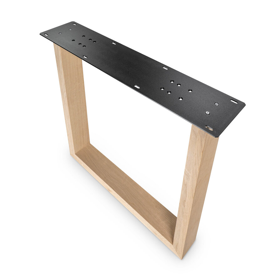 Eiken U-tafelpoten - 4x10 cm - set (2 stuks) - breedte (montageplaat): 78 cm - breedte onderkant: 70 cm - hoogte: 72 cm - gelijmd rustiek eikenhout (B/C) - KD 8-12% - tafelpoot geschikt voor een tafel(blad) vanaf 80 cm breed.