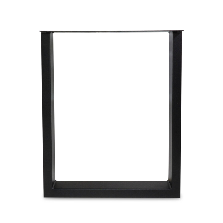 Metalen U-tafelpoten - zwart RAL 9005 - 4x10 cm - set (2 stuks) - breedte (montageplaat): 60 cm - hoogte: 72 cm - stevig staal inclusief zwarte fijnstructuur poedercoating - U-poot geschikt voor een tafel en bureau(blad) vanaf 62 cm breed.