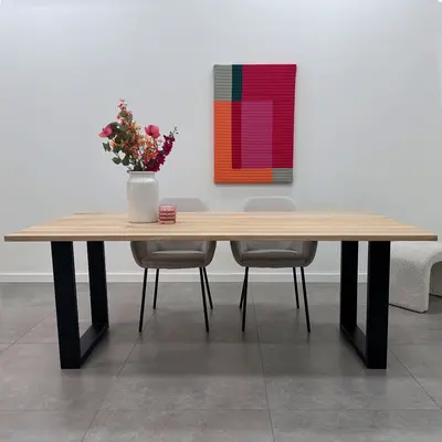 Een kwalitatieve zwarte U-tafelpoot van metaal met hoogwaardige poedercoating: modern, stoer en stijlvol! De smalle stalen U-poten set 4x10 cm in zwart RAL-9005 is geschikt voor een tafel & bureau(blad) vanaf 62 cm breed. Lees meer