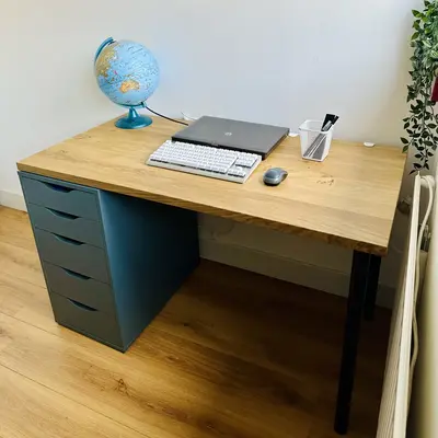 Eiken tafelblad - op maat - 2,7 cm dik - rustiek eikenhout (B/C) - brede lamel (9-12 cm) - gelijmd KD 8-12%