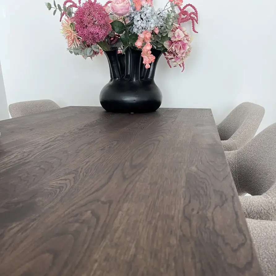 Eiken tafelblad - op maat - 2,7 cm dik - rustiek eikenhout (B/C) - brede lamel (9-12 cm) - gelijmd eiken tafel- KD 8-12%. Een prachtig eiken tafelblad volledig op maat en afgewerkt volgens uw wensen. Een rechthoekig eiken tafelblad is sfeervol en toegankelijk, ideaal voor de meeste interieurstijlen. Al onze eiken tafelbladen worden met de grootste zorg met de hand vervaardigd door ervaren vakmensen. Ons rustiek Europees eikenhout heeft een "B-sortering zichtzijde" met charmante knoesten en scheurtjes: Levendig en natuurlijk eiken, ideaal voor een warme & sfeervolle uitstraling. Een tafelblad bestaat uit doorlopende lamellen (in de lengte) van kunstmatig gedroogd eikenhout met een vochtpercentage van 8-12%, ideaal voor gebruik binnenshuis. De lamellen hebben een breedte tussen 9 en 12 cm, voor een mooi tafelblad met een luxe uitstraling. Uw op maat gemaakte eiken tafelblad wordt standaard onbehandeld, fijn geschuurd (korrel 120) en met afgeronde randen (2 mm radius) afgeleverd. Er zijn echter verschillende extra mogelijkheden beschikbaar. U kunt alle extra opties vinden in de online configurator.