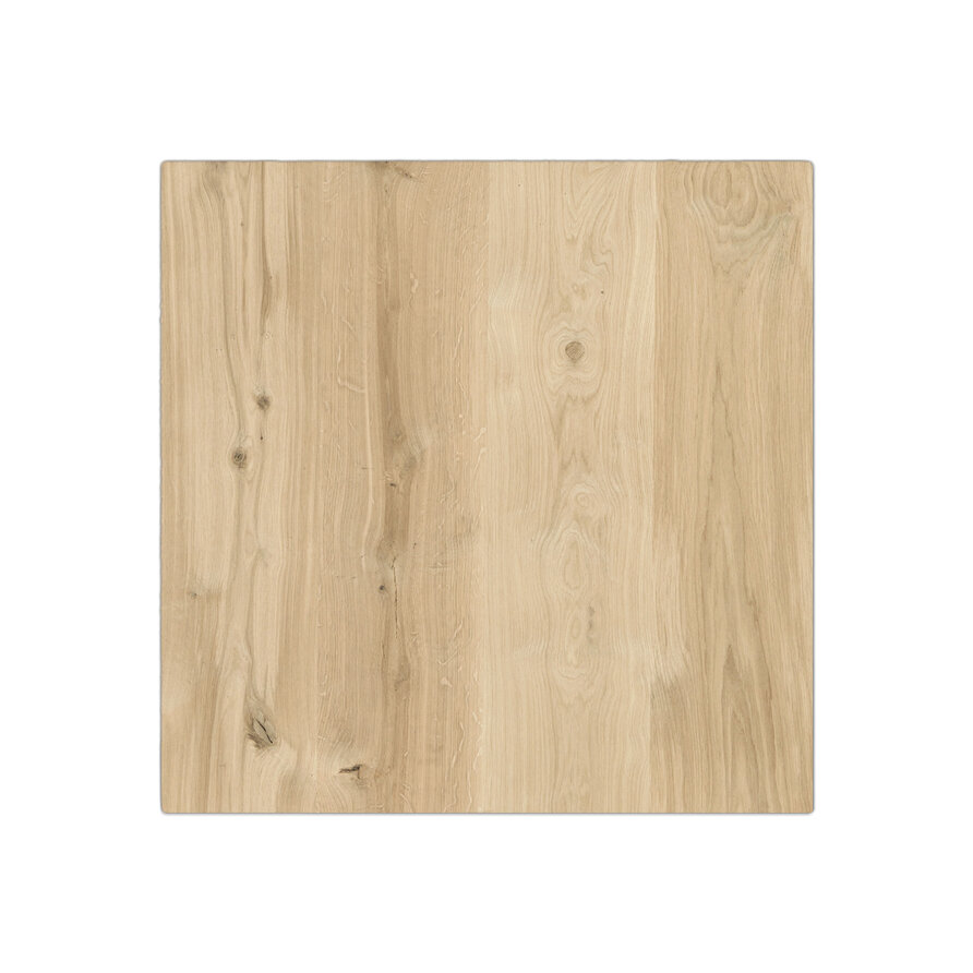 Eiken salontafel - vierkant - 2,7 cm dik - rustiek eikenhout (B/C) - brede lamel (9-12 cm) - gelijmd eiken tafel - KD 8-12%. Een vierkante salontafel van eikenhout, verkrijgbaar in diverse vaste afmetingen, afgewerkt volgens uw wensen. Een vierkante eiken salontafel is strak en zeer praktisch voor in kleine(re) ruimtes, perfect als stijlvolle koffietafel of huiskamertafel. Al onze houten tafels worden met de grootste zorg met de hand vervaardigd door ervaren vakmensen. Ons rustiek Europees eikenhout heeft een "B-sortering zichtzijde" met charmante knoesten en scheurtjes: Levendig en natuurlijk eiken, ideaal voor een warme & sfeervolle uitstraling.