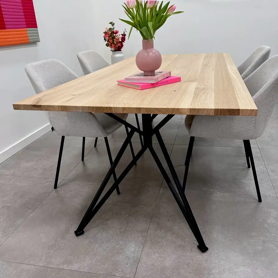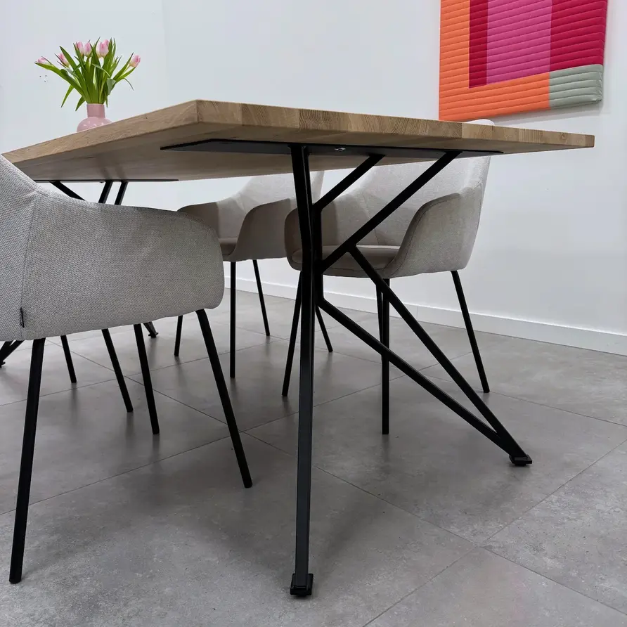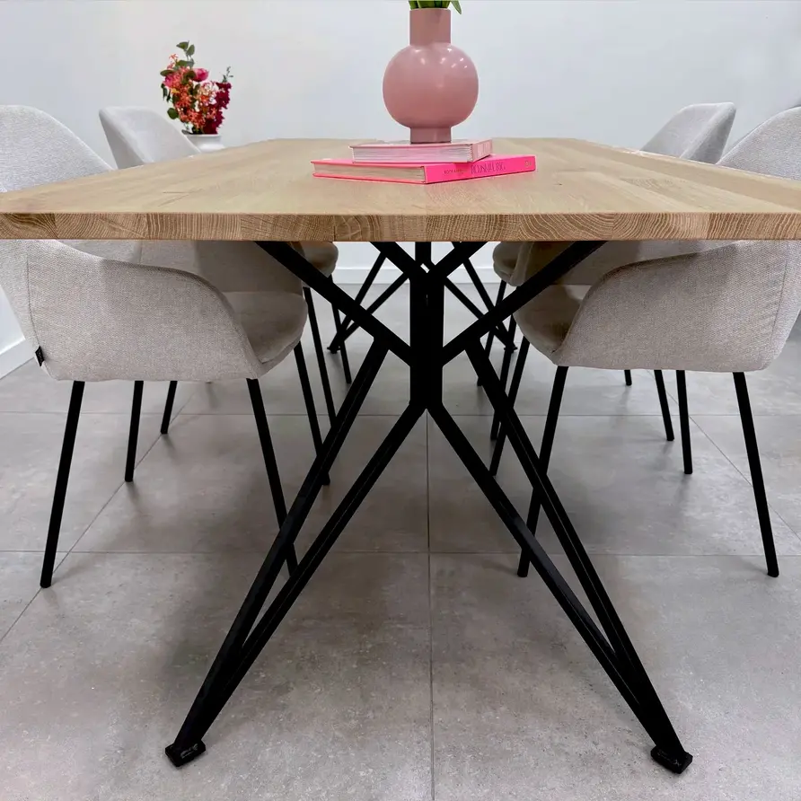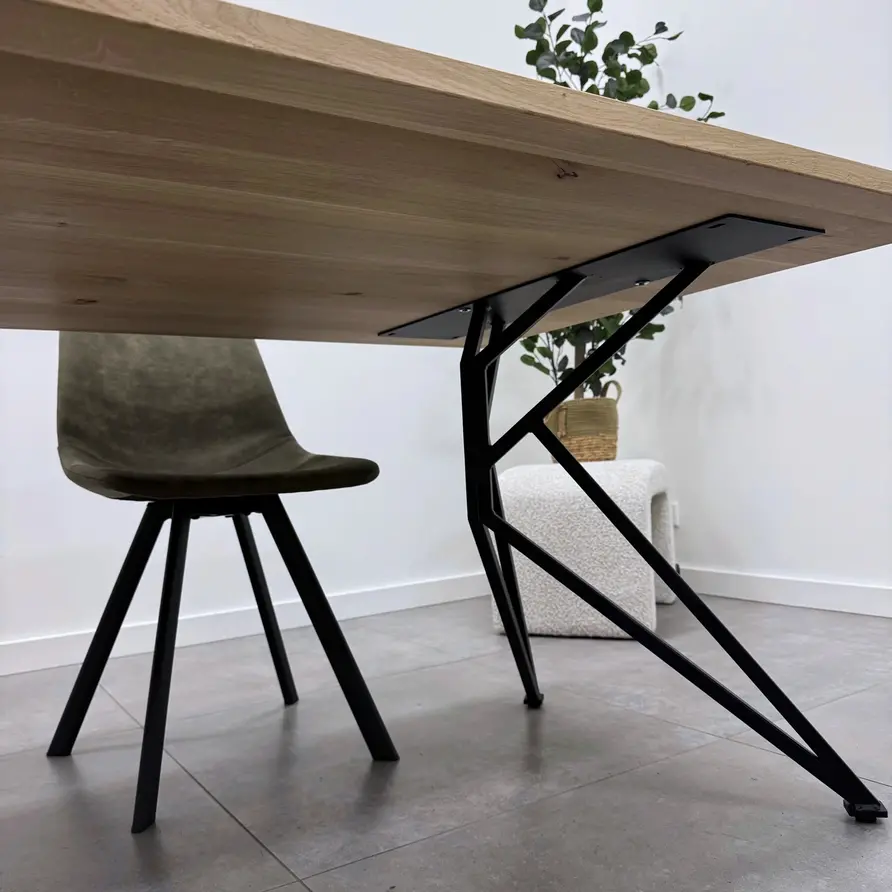 Een kwalitatieve metalen vlinderpoot: Modern, stoer en stijlvol, waarbij het dunne staalprofiel (2x2 cm) zorgt voor een luxe accent. Het zijn daarnaast 3D tafelpoten, waarbij het diepte-effect zorgt voor een extra luxe accent. Het stevige gelaste metaal, de bijzondere vlinder vorm, het dunne staal en de stoere (mat)zwarte fijnstructuur poedercoating zorgen voor een prachtig eindresultaat: Een moderne vlinder tafelpoot, erg mooi in combinatie met een (eiken)houten tafelblad!