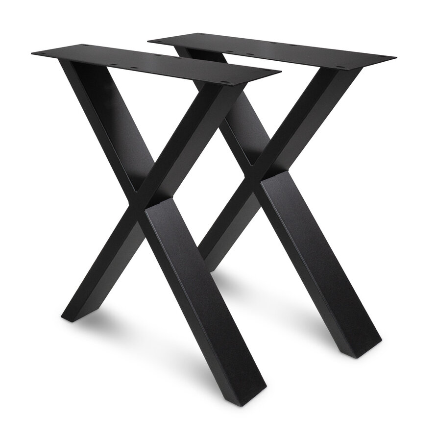 Metalen X-tafelpoten - zwart RAL 9005 - 4x10 cm - set (2 stuks) - breedte (montageplaat): 60 cm - hoogte: 72 cm - stevig staal inclusief zwarte fijnstructuur poedercoating - X-poot geschikt voor een tafel en bureau(blad) vanaf 62 cm breed.