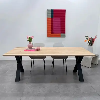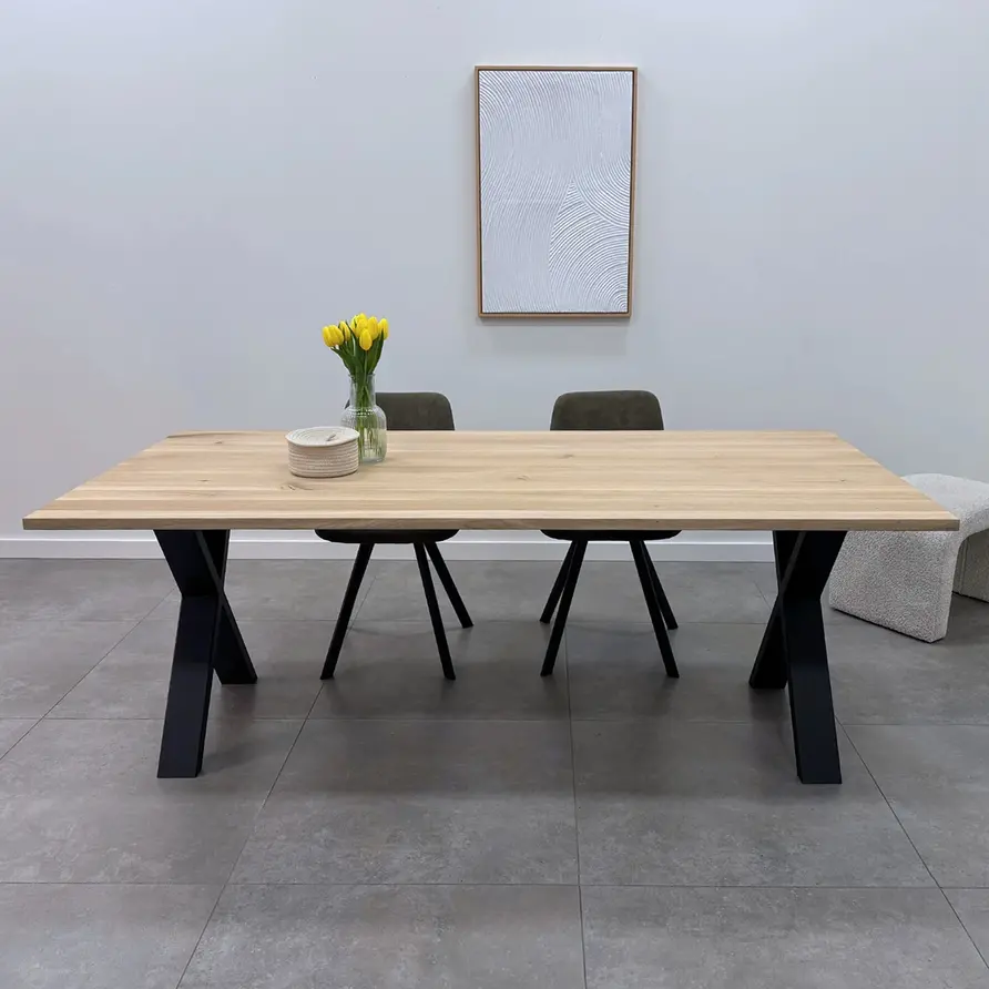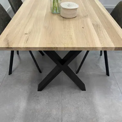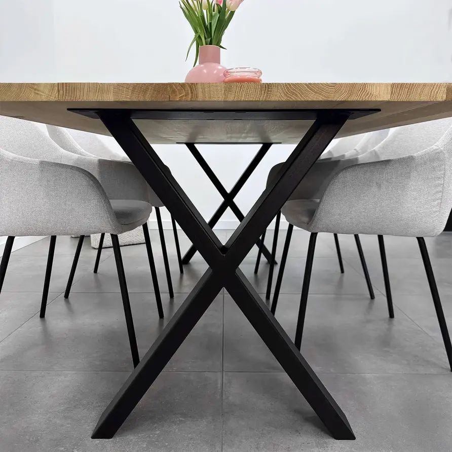 Een kwalitatieve metalen X poot: Modern, stoer en trendy, waarbij de 4x10 cm koker zorgt voor een elegant accent. Deze metalen X-poot is relatief smal, zeer geschikt voor een smalle tafel en een bureau. Het stevige gelaste metaal, de trendy X-vorm, de elegante 4x10 cm koker en de stoere (mat)zwarte fijnstructuur poedercoating zorgen voor een prachtig eindresultaat: Een moderne X tafelpoot, erg mooi in combinatie met een (eiken)houten tafelblad!