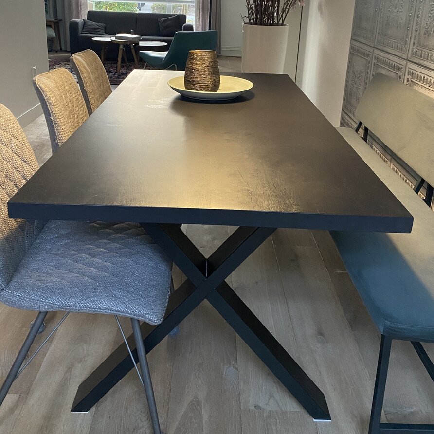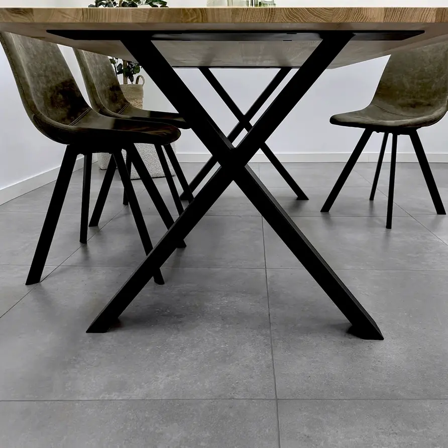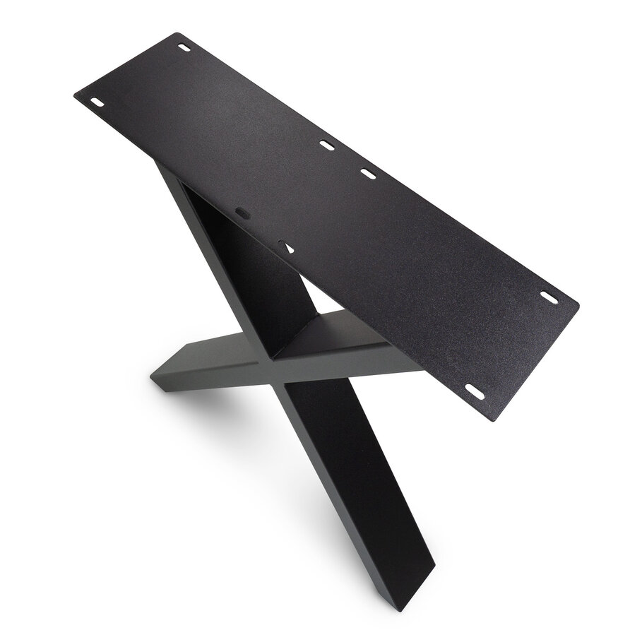 Een kwalitatieve metalen X poot: Modern, stoer en trendy, waarbij de 4x10 cm koker zorgt voor een elegant accent. Het stevige gelaste metaal, de trendy X-vorm, de elegante 4x10 cm koker en de stoere (mat)zwarte fijnstructuur poedercoating zorgen voor een prachtig eindresultaat: Een moderne X tafelpoot, erg mooi in combinatie met een (eiken)houten tafelblad!
