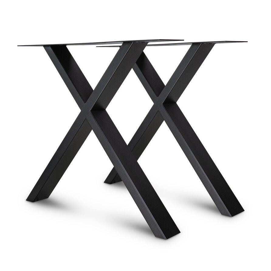 Metalen X-tafelpoten - zwart RAL 9005 - 4x10 cm - set (2 stuks) - breedte (montageplaat): 78 cm - hoogte: 72 cm - stevig staal inclusief zwarte fijnstructuur poedercoating - tafelpoot geschikt voor een tafel(blad) vanaf 80 cm breed.